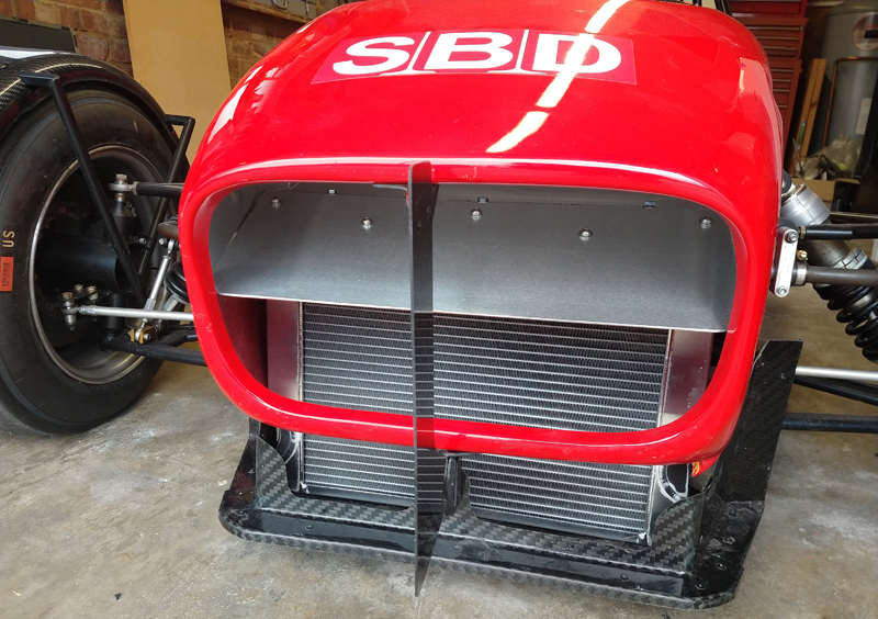 With the culmination of all the testing we did in 2020, where it was discovered that the air was not physically getting to the intercooler and simply going over the top of it due to the shape of the nose cone. The Westfield was returned to Alicool, where the radiator was repositioned as low as possible, the intercooler was enlarged slightly due to the extra space we found. We refitted the original bonnet/nose cone and Keith at Alicool designed a completely new scoop to drawn straight from the front of the nose cone where the air would normally supply the radiator. This meant the 50% of the entry to the nose cone now supplies the air to the intercooler, we have opened up the splitter underneath the nose cone so air can entry through the splitter to the lower half of the radiator. We won’t know the results until the first event, hopefully at Goodwood on the 17th April.